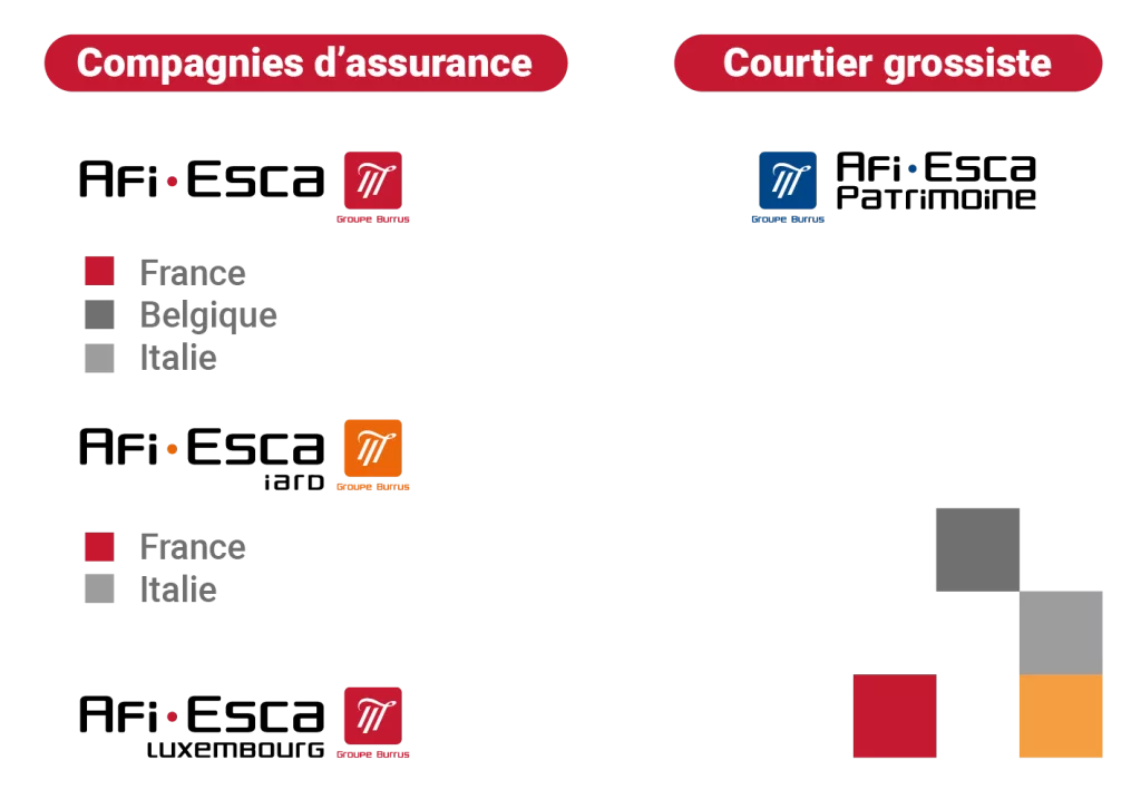 Créé il y a plus de 100 ans, la marque Afi-Esca (appartenant au “groupe Burrus”, familial, faisant référence dans le monde de l’assurance) englobe les entités suivantes :