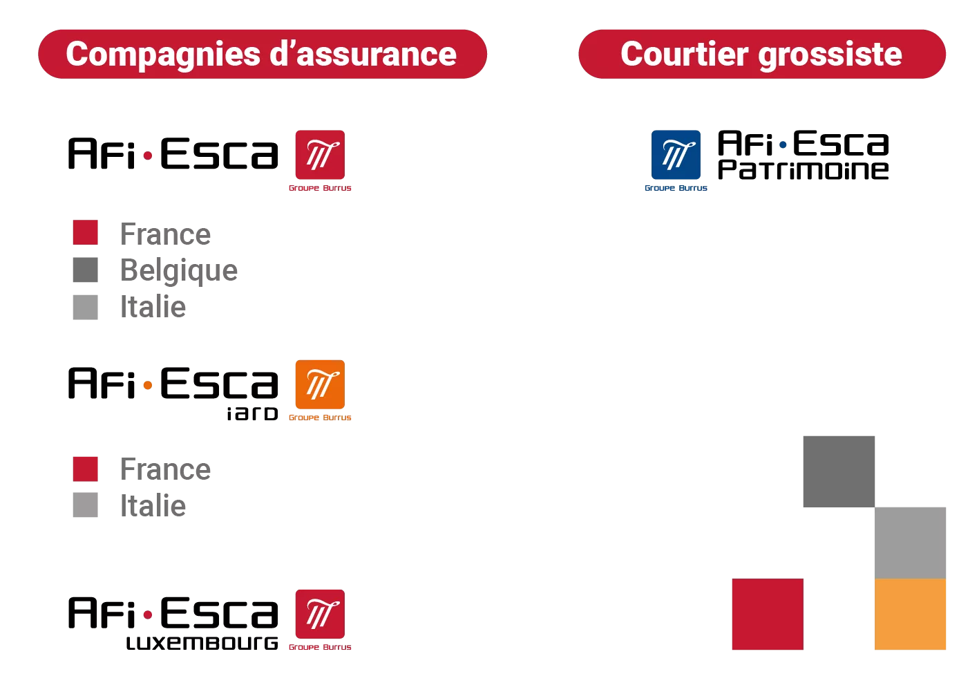 Créé il y a plus de 100 ans, la marque Afi-Esca (appartenant au “groupe Burrus”, familial, faisant référence dans le monde de l’assurance) englobe les entités suivantes :